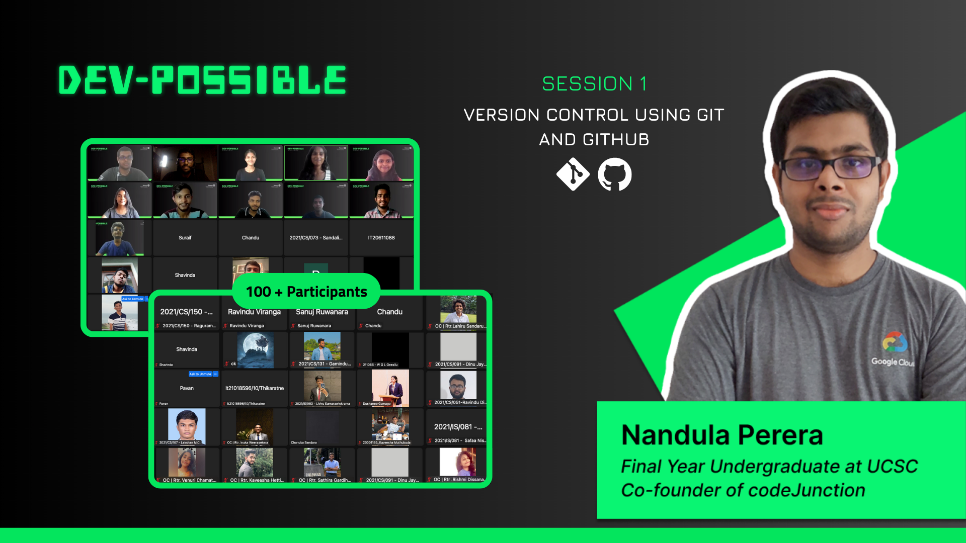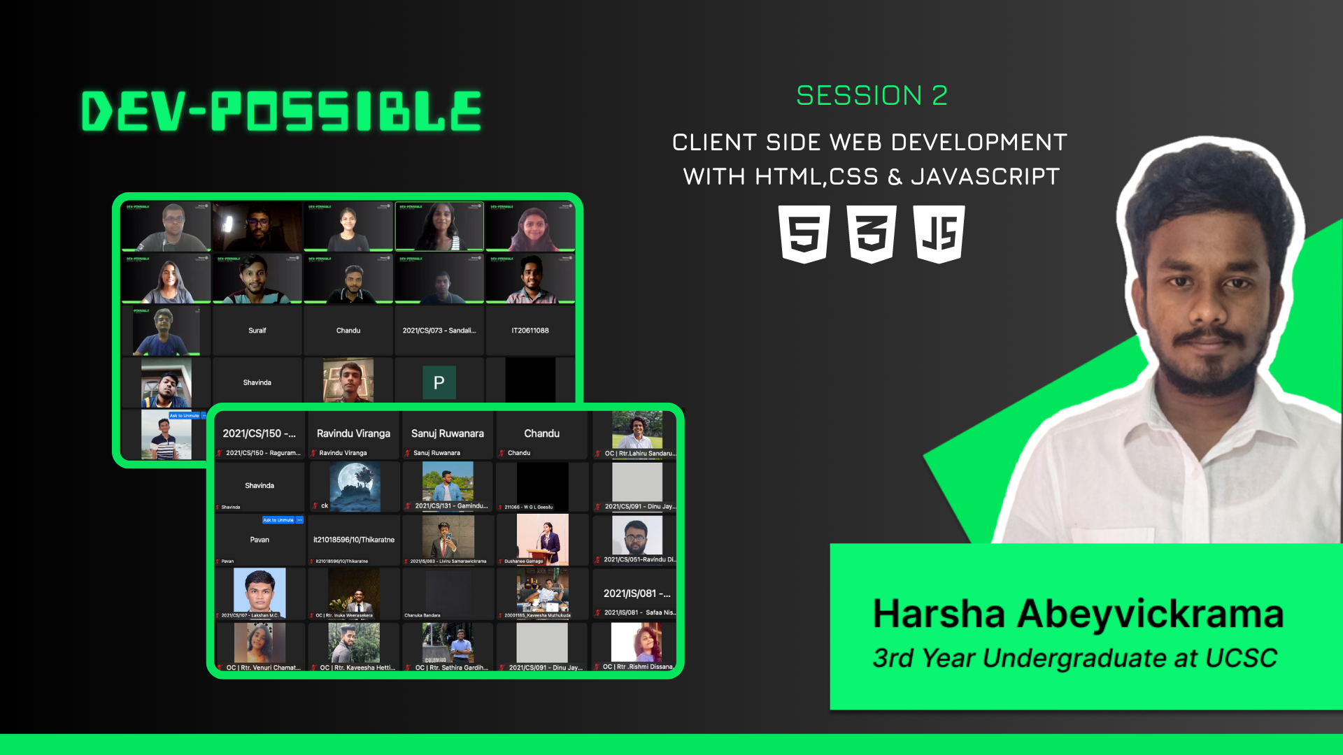 Dev-possible 2022 was the first project conducted by the Professional Development Avenue and was a series conducted with the aim of honing the knowledge and the skills in version controlling systems and web development targeting the undergraduates in Sri Lanka.