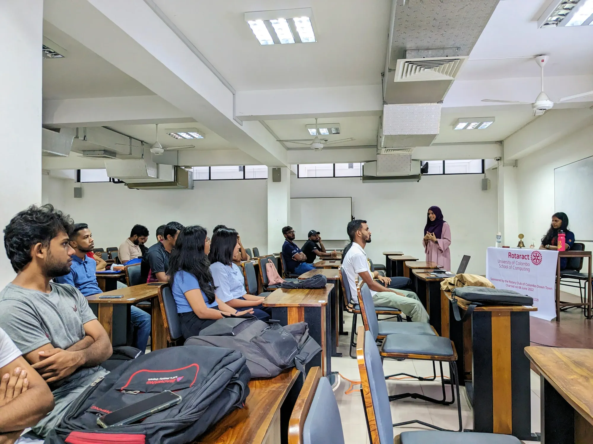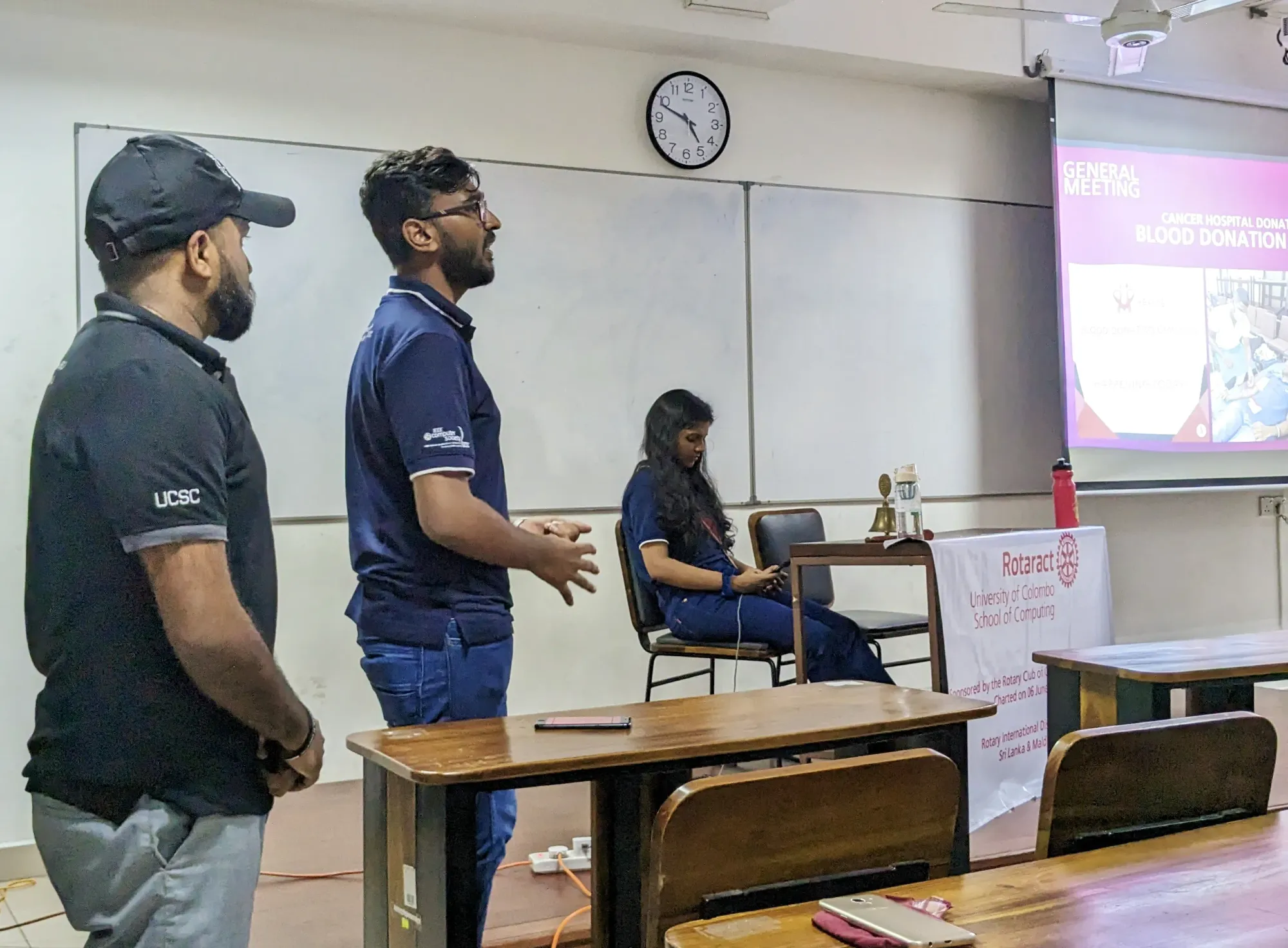 Then Rtr. Abdullah, one of the PR directors in the Rotaract District Steering Committee 23–24, remarked about the Rotaract District Assembly and requested all the members to take part in this event which marks the transition of the Rotaract leadership in Sri Lanka and Maldives. He then invited Rtr. Adeepa Bandara, the President-Elect, and Rtr. Dithmeena, one of the incoming Vice Presidents, to share their experiences on PETS and SETS (President-Elect and Secretary-Elect Training Seminar). They made it an engaging session by sharing their memories at PETS and SETS, and the room was filled with laughter, smiles, and camaraderie as they shared their experiences. They showed us what it means to be a part of the Rotaract family and invited us to take all the opportunities that come our way and to have fun in that process.
