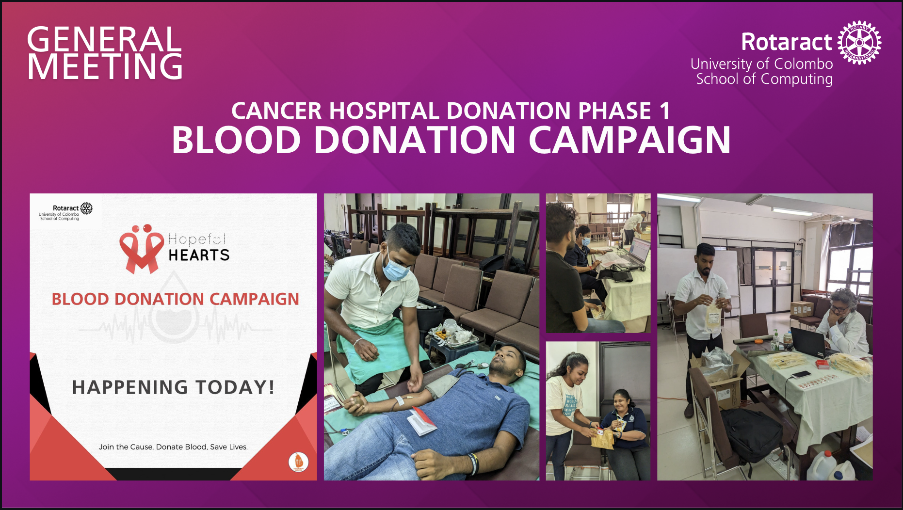Rtr. Rushdha, the Club Service director, mentioned the Club t-shirt project, highlighting the team's efforts in promoting club identity and unity. Rtr. Kivi, the Community Service Director, communicated about their project this month and then passed controls to the project chairs, Rtr. Thimira and Rtr. Wikum to explain this project in detail. The project was called "Hopeful Hearts," an initiative organized as the first phase of a series of projects. They mentioned how the club was able to make a meaningful contribution by organizing a blood donation drive and emphasized the importance of giving back to the community.