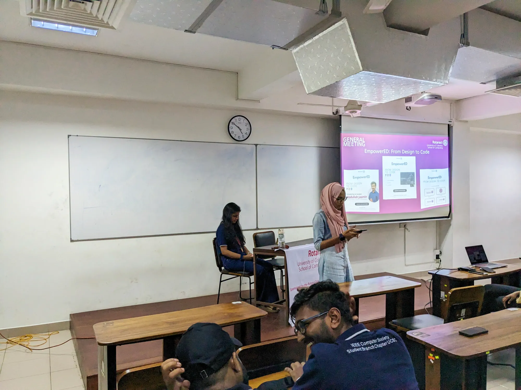 Moving on to International Service Avenue, Rtr. Radhiya updated us about the workshop, "EmpowerED," conducted by Rtr. Abdullah Jasmin. The workshop centered on the complete process of designing a Brandkit and a prototype, moving on to codifying the design created and how it could be deployed online. She mentioned how the project aimed to enhance the participants with practical design and coding skills and how it was conducted successfully.