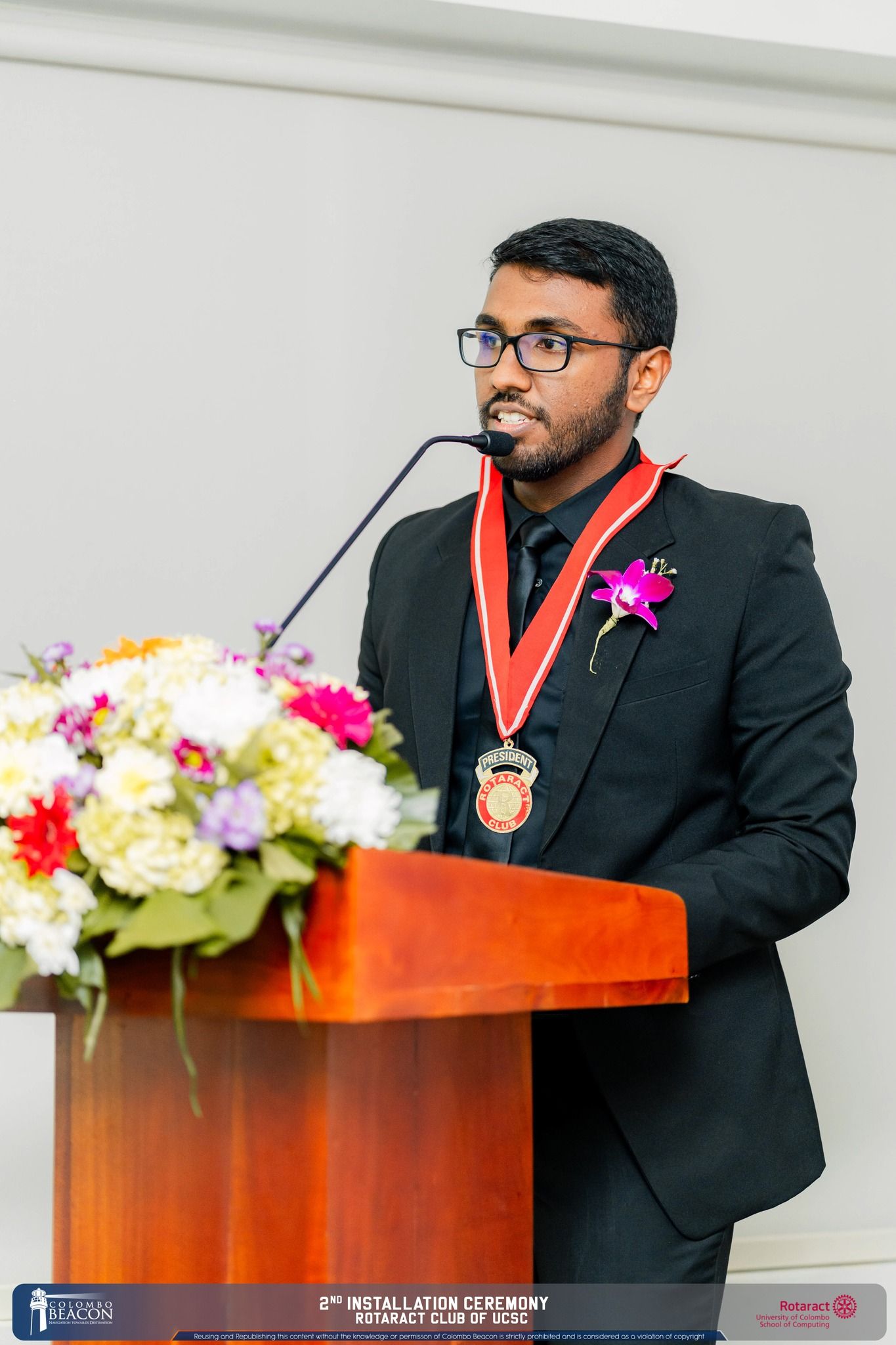 On November 22, 2023, the second installation ceremony of the Rotaract Club of UCSC successfully took place at the GAP HQ auditorium. This ceremony marked the initiation for another new chapter of our Rotaract journey, and indeed it was a memorable evening for all the rotaractors who joined us. The Ceremony started with the oil lamp being lit by Sri Lankan customs. The Rotaract Song was played after the National Anthem, Flag Salutation, and Rotaract Invocation.